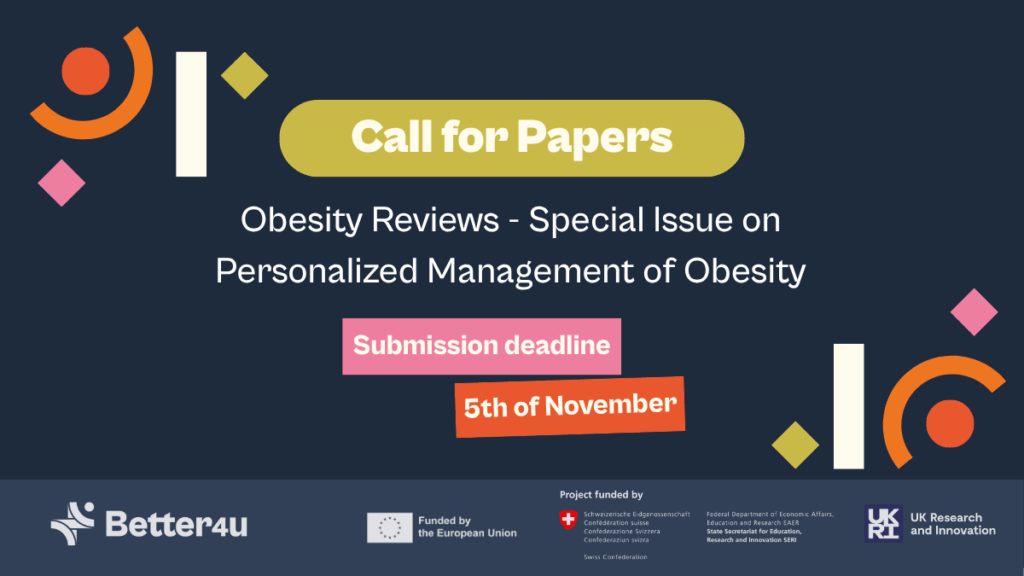 BETTER4U and Obesity Reviews, the official reviews journal of the World Obesity Federation and published by Wiley, published an open call for submissions. Recognized as a leading platform for high-quality, comprehensive reviews (Impact Factor: 8 (2024)), the journal aims to deepen understanding across all areas of obesity research and related health conditions.